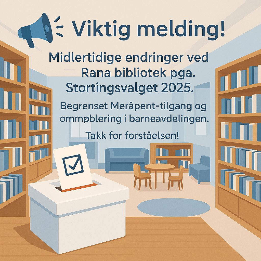 I forbindelse med at Rana bibliotek skal fungere som stemmelokale under forhåndsstemming og på selve valgdagen for Stortingsvalget 2025, vil det bli noen midlertidige endringer i bibliotekets lokaler og tjenester: